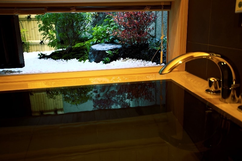 見所はなんと言っても奥の庭です。お部屋から、浴室からアングルを変えて楽しめるよう設計してあります。
